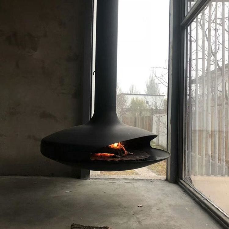 प्रोडक्ट का नाम लकड़ी जलाने वाले स्टील के स्टोव सीलिंग माउंटेड सस्पेंडेड फायरप्लेस सामग्री उच्च कार्बन कोर्टन